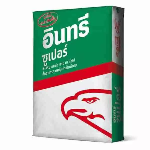 ปูนอินทรีย์ซูเปอร์ ปูนซีเมนต์ผสม สูตรเข้มข้น เหมาะสำหรับงานก่ออิฐ ฉาบปูน เนื้อปูนมีคุณภาพสูง ฉาบลื่นเป็นพิเศษ คุณภาพตามมาตรฐาน มอก.80-2550 เนื้อปูนมีความเข้มข้นมากขึ้น ฉาบลื่น ยึดเกาะตัวได้ดี ช่วยให้ผนังเรียบสวย แข็งแรง ทนทาน สามารถใช้ได้เท่ากับปูนซีเมนต์ผสมขนาด 50 กก.ทั่วไป