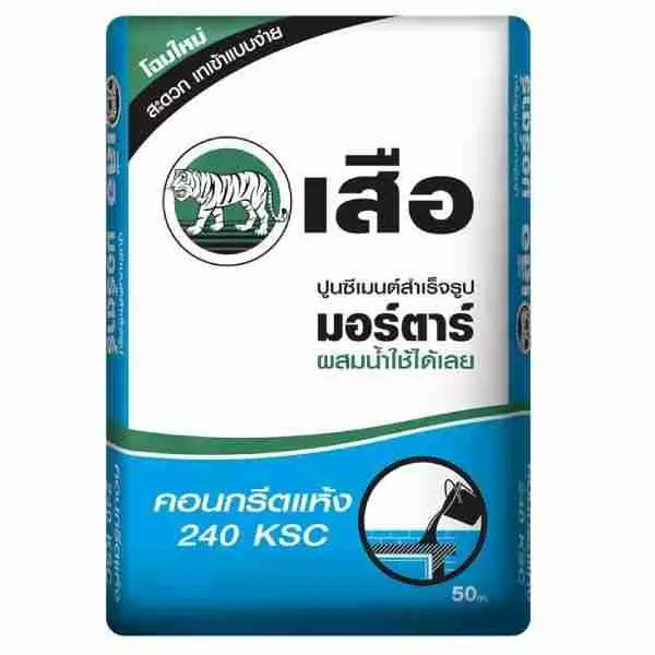 - เสือมอร์ตาร์ คอนกรีตแห้ง เป็นปูนที่ผสมทรายสำเร็จรูป สามารถผสมน้ำและใช้งานได้ทันทีโดยไม่ต้องผสมทรายเพิ่ม